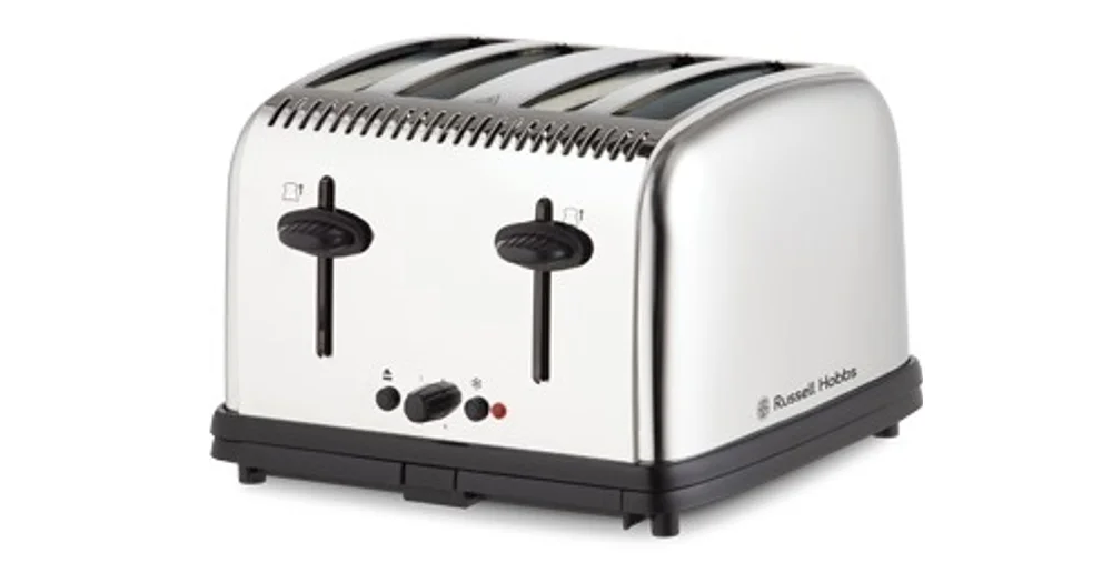 The russell hobbs 4 slice toaster comes sparkling in its stainless steel and polished 4 bread slots.